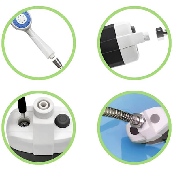 Душ простий у використанні: для ввімкнення натисніть і утримуйте кнопку протягом 3-5 секунд. Легкий і портативний, він ідеально підходить для поїздок, а довжина шланга 1,5 м забезпечує зручність користування.