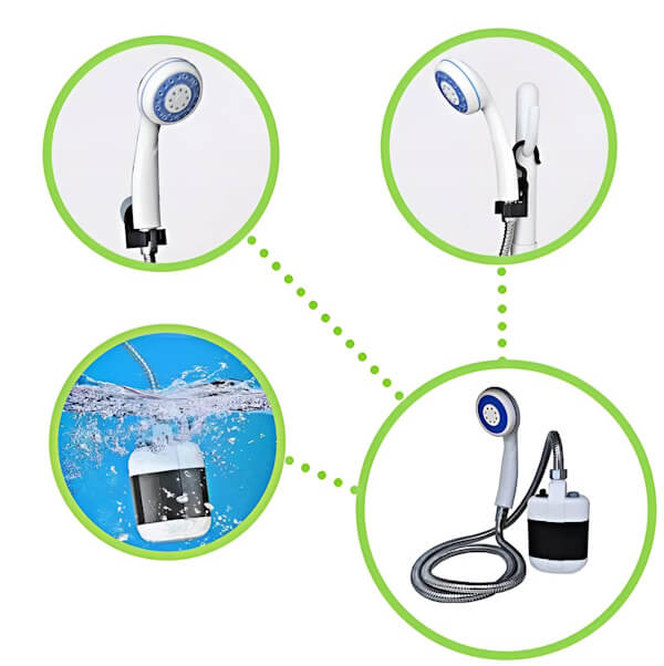 Туристичний душ із акумулятором та насосом — це зручний і компактний пристрій, який забезпечує комфортний душ навіть у польових умовах.